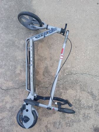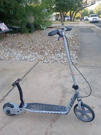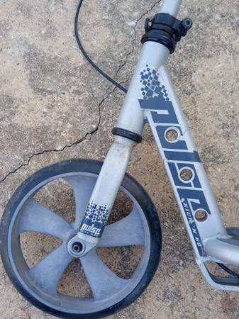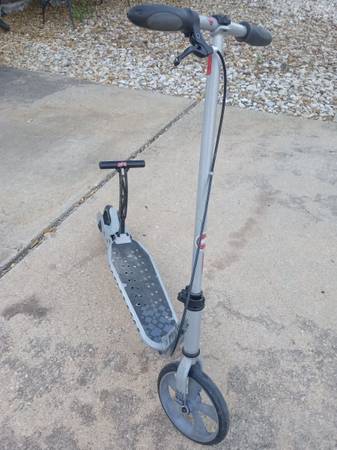 YES, the Pulse Xcelerator Kick 'N Go Scooter is available for sale. It is in excellent condition, and is suitable for ages 8 to adult (180 lbs). It is propelled by pushing down on the rear pedal using one foot, otherwise it coasts like any other scooter. The large diameter wheels have solid rubber tires that never need inflating, and the handlebar folds down for easier storage & transport. There is a handbrake for the rear wheel, and a kickstand for convenience. These originally sold on Amazon for $150, but mine is priced much more reasonably. I accept Venmo or cash only. I'm located in North Austin near Parmer Lane and Mopac. Please look at the enclosed map below for my location.