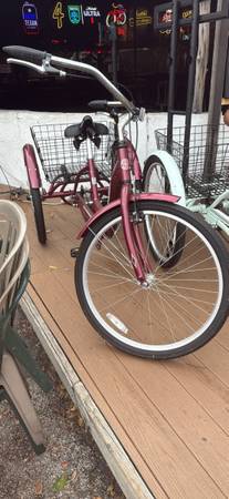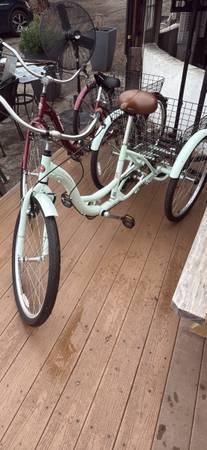 Two adult trikes: teal and burgundy. 26” wheels. Cargo basket. New - each have been ridden for less than 2 miles. Price is for each.
