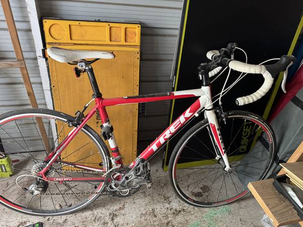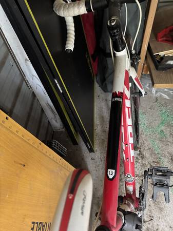 White/red, lightly used / minimal chain wear (probably ridden 20 times in total), needs new tubes and tune up. Pedal cages Frame size : 52 cm Wheels: 700c (700×23C tires) Cash or venmo only.