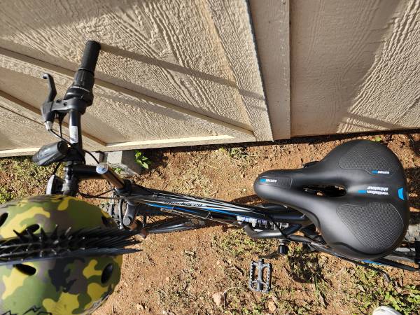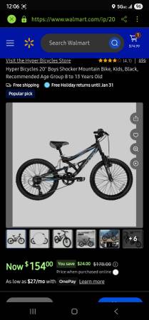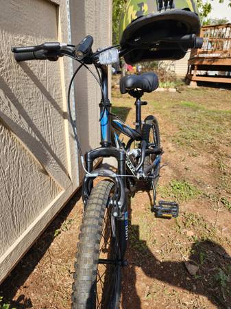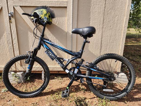This is like new. It was only rode a few times and was garage kept. It comes with a headlight and attached light for under lit night rides. It also comes with the boys helmet seen in the pics. I've included a listing of the item new from Walmart for comparison. Cheaper than new, and has extras. Fair price for nearly new and the extras included.