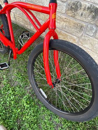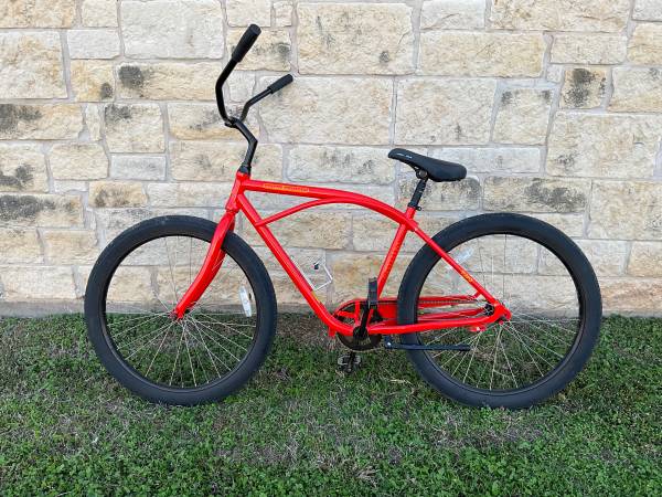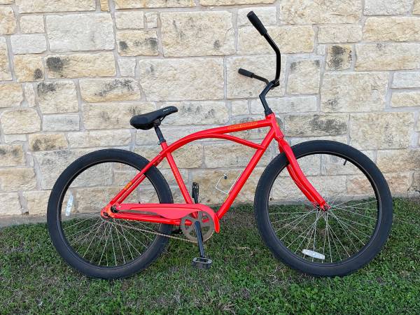 Great looking beach cruiser with sealed headset, plenty of tread on the tires, no smileys or loose spokes on the rims. Has a coaster brake, reflectors, kickstand, chain guard and water bottle holder. still looks new, these bikes run for 480+ without tax or shipping . Pick up in Elgin, Texas . This cruiser is similar to Schwinn.