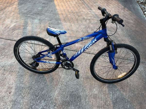 Used Trek MT 220 Kids’ Mountain Bike 24" wheels, lightweight aluminum frame, front suspension, 21‑speed gearing, and kid‑friendly adjustable parts. Great step‑up bike for ages 8–12.