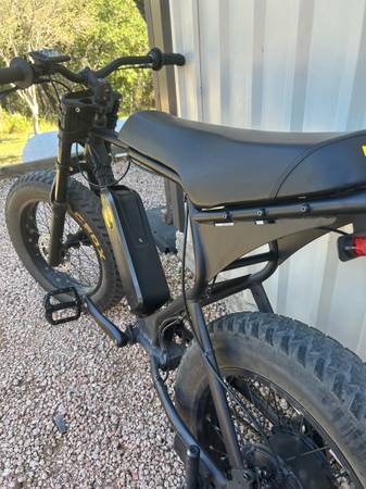 I bought this Mac fox x1 about 3 or 4 months ago. The bars, stem, brakes, throttle, and front odi plate have been upgraded/ added to the bike. The top speed is 25 mph. It works perfectly fine and the only reason I’m selling it because I’m looking to upgrade to something with more power or a decent full suspension mountain bike. I am open to trades but only a mountain bike or e-bike. Let me know if you want it, $1000.