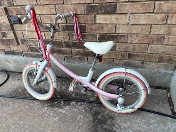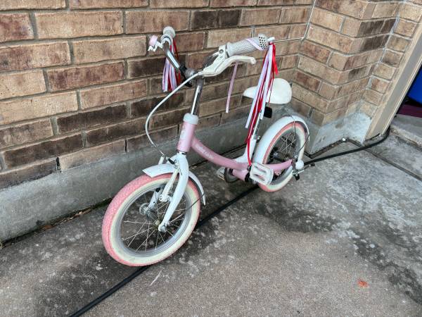 Great girls bike with hand brake, pom pons, kick stand, and bell. Email me if you want it. Cash/venmo/zelle and it is yours! Your child will love it....