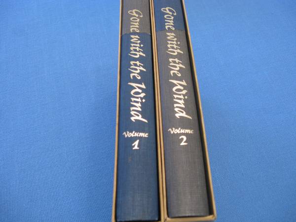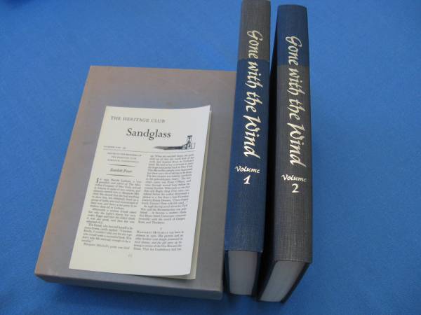GONE WITH THE WIND BY MARGARET MITCHELL. HERITAGE PRESS 2 VOLUME SET 1968 HARDBACK IN SLIP CASES THAT HAVE FADING OWNER BOOKPLATE INSIDE FIRST VOLUME WITH PRESS RELEASE FROM HERITAGE BOOKS 593 PP,...