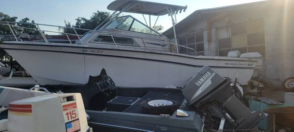Boat and Trailer without the motors $6000. With the 2 200hp Johnson Ocean runners add an extra $3000. This is a solid fishing vessel It is a cabin crusier with lots of storage and space for fishermen and gear. It needs alittle TLC but when ready she will be a great boat for the ocean or lake. Needs some seats and some cleaning but nothing major. A project, for sure.