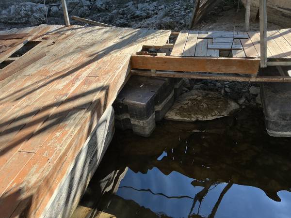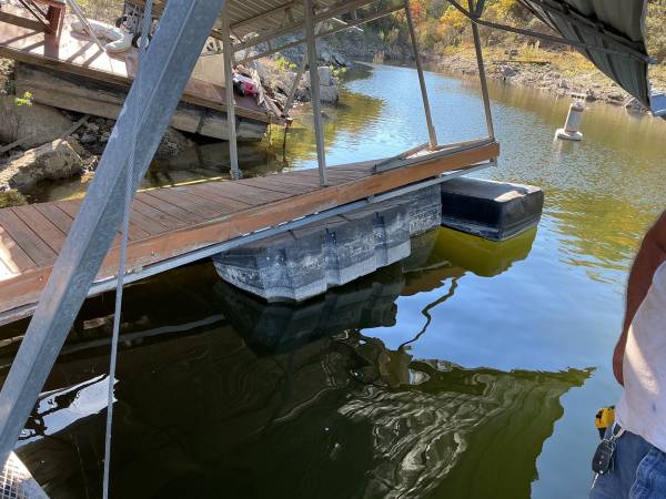 12-15 Blocks Encapsulated foam for sale. Old boat dock. 2 electric hoists that appear to work. About 12-15 blocks of encapsulated foam. Wooden decking unusable. Metal roof and metal frame salvageable. Value is in the encapsulated foam. Near Mansfield Dam. Must be moved. Rick show contact info