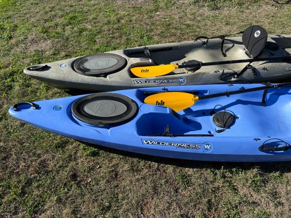 Kayak for sale— PRICE DROP - only 1 left (the blue one)! One Wilderness Systems Tarpon 120 (12 foot) sit on top kayak for sale. Very good condition with oar, life vest, and 1 wheel cart. $360 (cash)