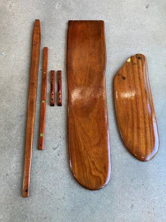 This is an original Sunfish. A little dirty, but it’s all there. Includes trailer with pretty new wheels, includes a spare and the original wheels. I restored all of the wood items and used a high quality marine grade finish. I think I did 4 coats. Also customized part of the rudder with circular turquoise inlay. All hardware included. I’m near Airport and Guadalupe and would love to find this a good home!