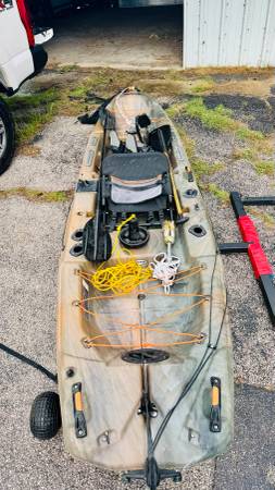 Used but in a great condition fishing kayak for sale with all the extras included. $700 cash. The Catch 130 Hydryve II is a 12’6” rudder-controlled fishing kayak with pedal drive technology. Its patented Ram-X™ premium material makes it sturdy, lightweight, and easy to move, so you won't need assistance getting it to your favorite spot. This sit-on-top features adjustable pedals and foot straps for a comfortable ride, as well as an exceptionally stable tunnel hull for maximum pleasure on the water. Plus, its Ergocast G2™ seating system includes an integrated pocket in the backrest that can support additional lumbar comfort. With all these exciting components, this fishing kayak will surely be your perfect companion on unforgettable fishing adventures.