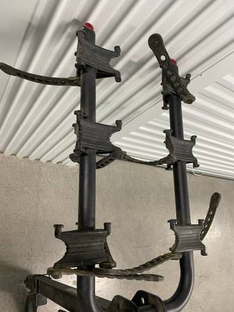 Rock Mounts three bicycle folding hitch rack. Serious inquiry only and include your number to weed out the scammers online and for faster response during pickup. Local sale and cash or Venmo....