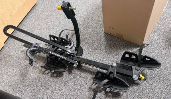 Description: The Saris freedom ex builds on the hugely successful platform of the original freedom Racks. The sturdy, Midwest-made raw materials built on a single bar results in a sleek, minimalistic design that sports maximum hauling capacity and an easy-to-maneuver footprint. The freedom ex can securely carry two bikes, up to 60 pounds each, and accommodates bikes with tires up to 4 inches wide, all with integrated locks for when you are away from the car. Weighing in at a feathery 27 pounds, the freedom ex adds the ability to tilt the rack away from the vehicle even when fully loaded with bikes.