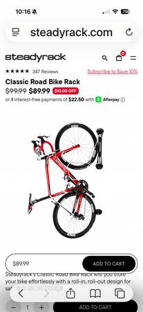 Two Steadyracks. One classic, One fat tire. These mount to the wall so you can store your bike vertically, and they pivot so they take up less room. Currently on sale for $90 EACH, but I'm selling 2 for the price of one! Cash only please. Zilker pickup.