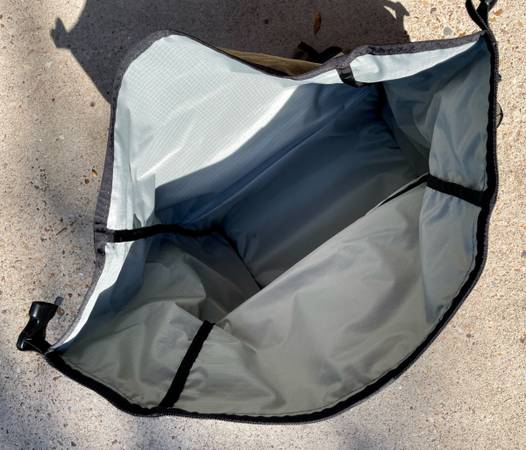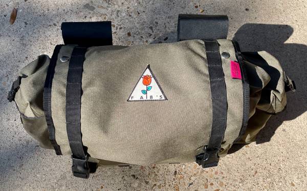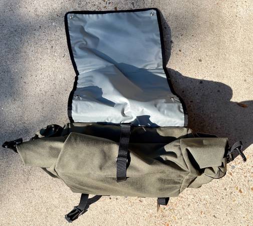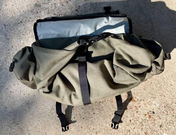 Cordura 1000D / Large / Olive Usable as handlebar bag or saddle bag One large roll-top compartment and two side pockets.
