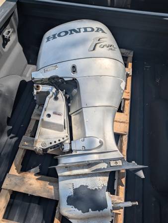 90HP Honda clear title in hand. ~280 hrs on the motor. It runs great at higher speeds, however it idles rough and 2 separate shops indicated that the carburetor idle jets need attention on 2 of the cylinders. It doesn’t come with shifter or throttle cables. The motor is on a palette and can be easily loaded onto a truck bed or trailer. Please no trades, cash in hand, face to face sale only. Eight three zero two six five zero four five five.