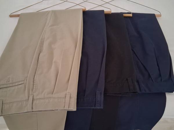 Flannel-lined 100% cotton pants. Two pairs for sale: tan and brown. Comfortable, warm, and nice looking. Size 32x32. Relaxed fit. Never worn.