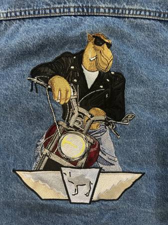 For sale is a like new Vintage 90’s Joe Camel denim jacket with him epically embroidered on the back sitting on a motorcycle looking like the “Fonz”. Made in USA, like new, Size Large and highly collectible.