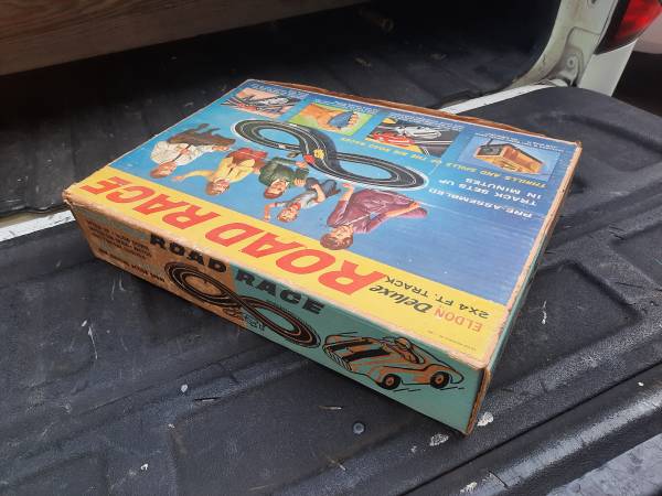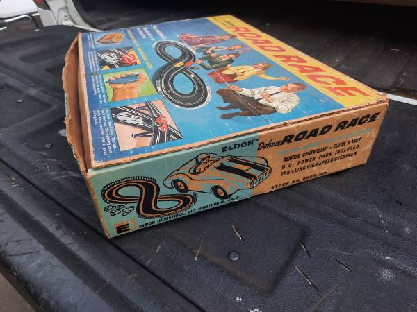 PRICE NEGOTIABLE ELDON DELUXE ROAD RACE ORGINAL BOX AND PAPERWORK. Antique, vintage, mid-century toy. Old toy.