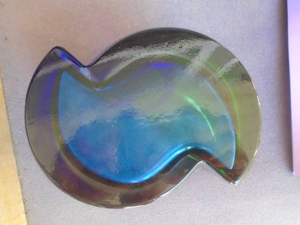 Measures 4" tall x 8" length x 6" width -Weighs 6 lbs -Displays well. -Maker's sticker is no longer present. I believe its origin is Czech. (no gallery paperwork). A very nice piece to add color and interest to your space!