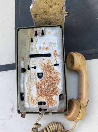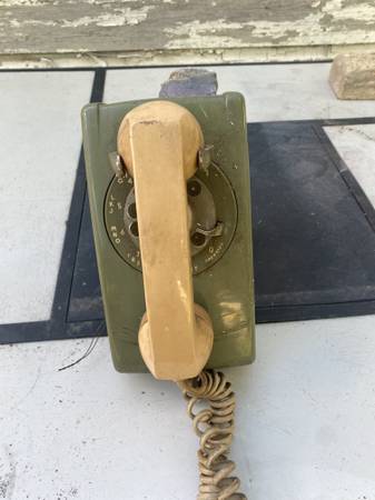 Old rotary wall phone Old . Dirty , great patina Was working when I took it down 2 yrs ago Perfect man cave or shop pc $10 cash South Austin pick up