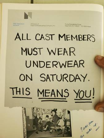 You loved the Saturday Night movie, now read two large format paperback books with behind-the-scenes scoops from the early years of Saturday Night Live. Cast biographies, photos, scripts with notes and camera shots, internal NBC documents, fan letters, deleted and completely censored sketch scripts, prop and costume drawings, original musical arrangements, killer bees, coneheads, puppy-uppers/doggie downers, Samurai and much more.