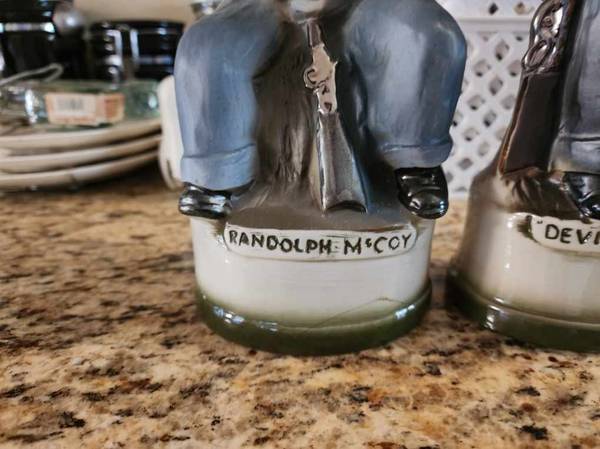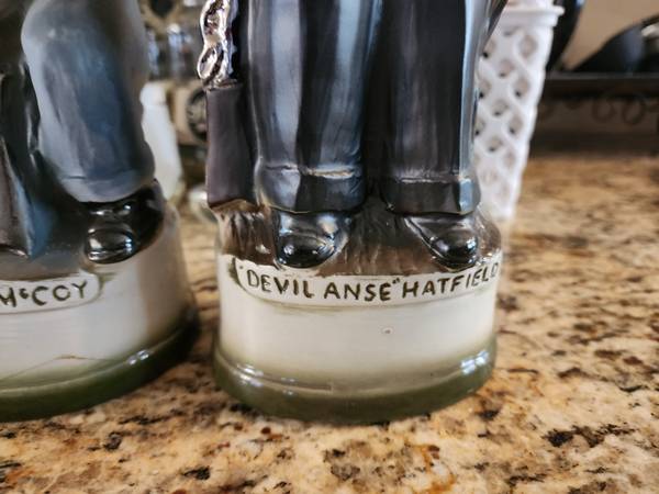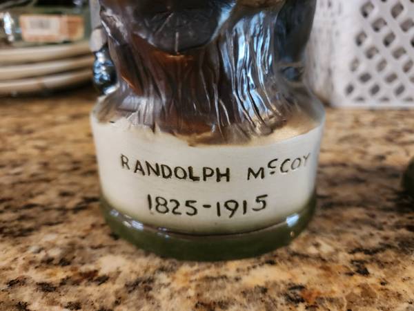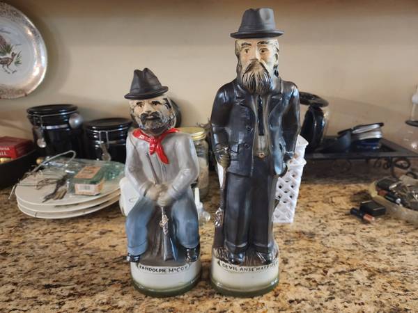 Like the ad states, Vintage Jim Beam Randolph McCoy and "Devil" Anse Hatfield Decanter's. Empty of course. Perfect condition with no chips, cracks or fading of the enamel. Respond with your # and I will call you back. Pick up in Dripping Springs only.