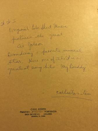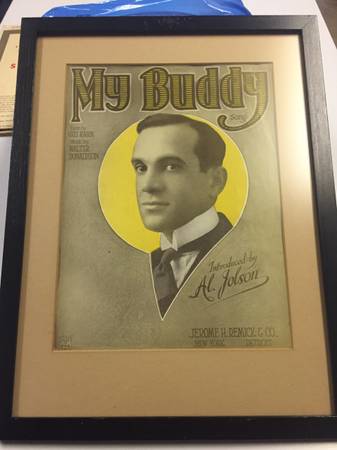 1 - Large framed Color Sheet Music "My Buddy" with glass covering – 17" x 13"