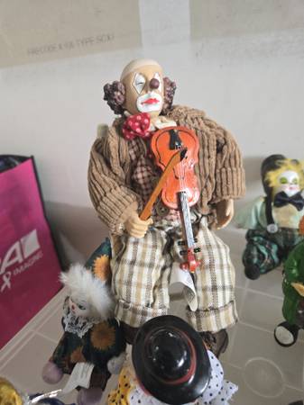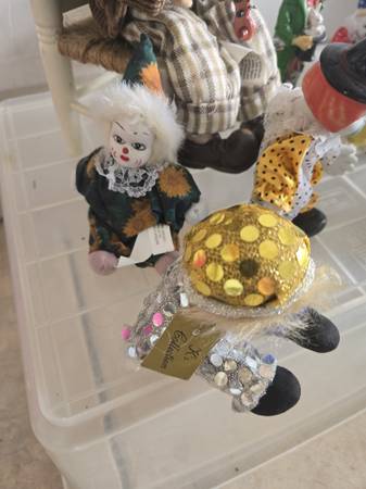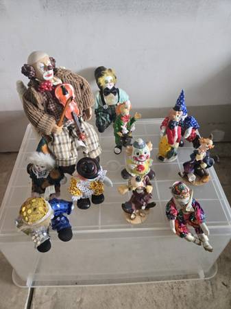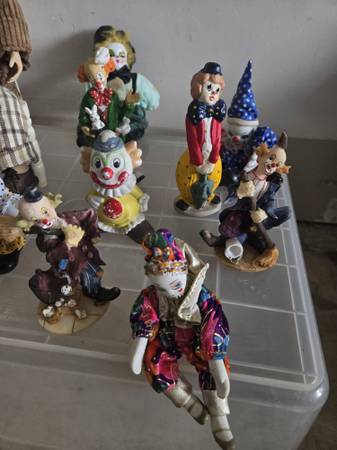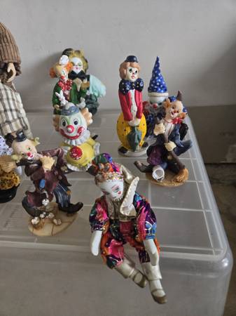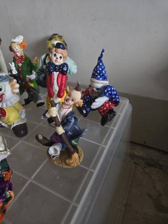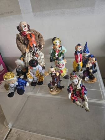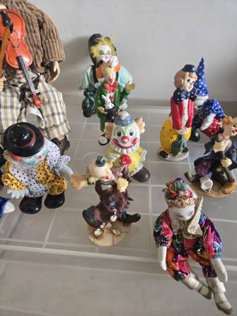 Different styles and shapes. Priced to sell. The taller clown sitting on his chair 8s $10.00. The other prices range from $3.00-$5.00. Good condition. Buy more and save.