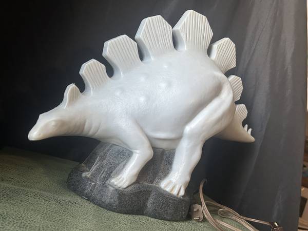 For sale is a vintage Stegosaurus Dinosaur Blow Mold. I believe from the 60’s-70’s era based off the wiring and common blue lighting sticker you see on lamps from that time period. I posted pics of this Blow Mold in several collector groups and nobody has been able to find any info on this rare piece. No issues with it and in incredible condition. I put a color changing LED Bulb in it so it’s fun when turned on. A super cool vintage piece great for the dinosaur lover or blow mold collector. Measures from tail to head 20 inches and is 15 inches tall.