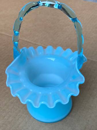 This basket is about 70 years old, and is in mint condition. It is very pretty. If interested in this glass basket, let me know. Thank you. Ps. If this is still posted, it’s still for sale.