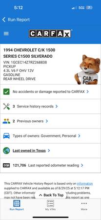 Selling 1994 Chevrolet Silverado 1500 4.3L With Only 121k Original Miles. Drives Good with Cold AC,Original Radio works,Interior In pretty good shape,All 4 Tires in Good Shape. Everything Works as...