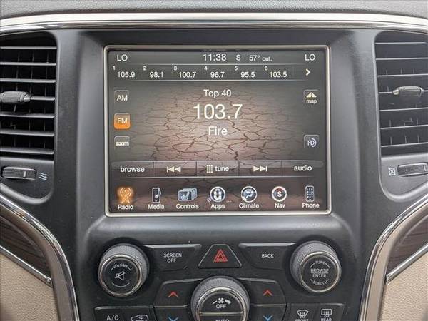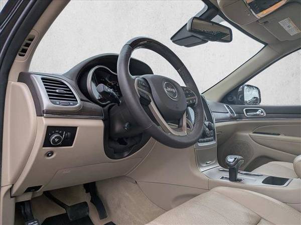 * Advanced Technology Group * Panoramic Roof * Leather Seats * Navigation System * Keyless Start * Rear Spoiler * Cooled Front Seat(S) * 3.45 Rear Axle Ratio * 50 State Emissions * Brilliant Black Crystal Pearlcoat * Brown/Light Frost; Leather Trim Seats W/Edge Welting * Eco Suspension I * Engine: 3.6L V6 24V Vvt Flex Fuel * Transmission: 8-Speed Automatic (845Re)This vehicle includes a Money-Back Guarantee* and passed our precise inspection process. Best of all the price you see is the price you pay. No haggling. No back and forth. No pressure. And this price is so good it is guaranteed. *Money-Back Guarantee is valid for 5 days or 250 miles, whichever comes first. Subject to certain terms and conditions. See store for details. Some restrictions apply.Check out this pre-owned 2014 Jeep Grand Cherokee we recently got in. This Jeep includes: ENGINE: 3.6L V6 24V VVT FLEX FUEL (STD) *Note - For third party subscriptions or services, please contact the dealer for more information.* This Jeep Grand Cherokee Overland has a tough exterior complemented by a well-designed interior that offers all the comforts you crave. Sophistication & understated luxury comes standard on this Jeep Grand Cherokee Overland. Well-known by many, the Grand Cherokee has become a household name in the realm of quality and prestige. This low mileage Jeep Grand Cherokee has barely been touched. It's the next best thing to buying new. More information about the 2014 Jeep Grand Cherokee: The Jeep Grand Cherokee has proven itself the premiere luxury SUV for 20 years. The latest Grand Cherokee builds on that tradition by offering civilized highway driving as well as the equipment to make a credible show off-road. The base Laredo 4x2 starts at just under $29,000 and comes very well-equipped. And the top-of-the-line SRT's all-wheel-drive on-road performance rivals that of the Porsche Cayenne Turbo, but for half the price. Strengths of this model include high-performance SRT variant, powerful engine lineup with new diesel availability, True, proven off-road prowess, and luxurious interior