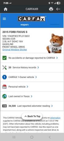 2015 Ford Focus SE With ONLY 36K Miles . ( Clean Title + 1 OWNER )