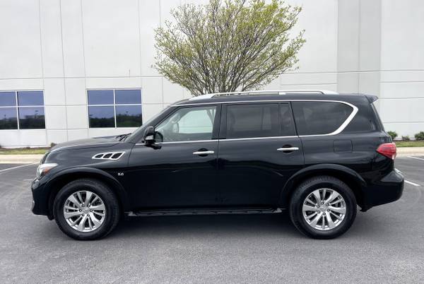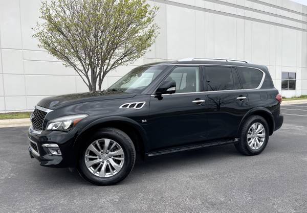2016 Infiniti QX80 4dr SUV 5.6L V8, Cold AC, Push Start, HDD Navigation w/Voice Control, Bluetooth, Heated Seats, Leather Interior, MP3, Keyless Entry, Parking Sensors, Auto-Dimming Heated Exterior Mirrors, Auto-Dimming Interior Mirror w/Compass, Memory Function for Driver, Radio, Technology Package, New Tires, Full service History, Clean Title, Carfax available, Financing Available.