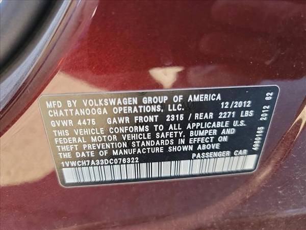 * Sun/Moonroof * Navigation SystemThis vehicle includes a Money-Back Guarantee* and passed our precise inspection process. Best of all the price you see is the price you pay. No haggling. No back and forth. No pressure. And this price is so good it is guaranteed. *Money-Back Guarantee is valid for 5 days or 250 miles, whichever comes first. Subject to certain terms and conditions. See store for details. Some restrictions apply.Thank you for your interest in one of AutoNation Toyota South Austin's online offerings. Please continue for more information regarding this 2013 Volkswagen Passat SEL with 192,219mi. You don't have to sacrifice style or comfort with this fuel-efficient Volkswagen Passat. This vehicle won't last long, take it home today. You could keep looking, but why? You've found the perfect vehicle right here. More information about the 2013 Volkswagen Passat: The 2013 Passat is a midsized sedan, fully competitive in price and features with other high-value models such as the Hyundai Sonata and Kia Optima. It is configured size-wise to directly take on the Honda Accord. VW has increased standard feature content and simplified the Passat to just 16 build combinations, all with lower prices than seen on the previous generation--meaning that if a buyer is simply looking for a well-equipped mid-size sedan, the Passat is going to look like a great deal. The Passat remains one of the few mid-size sedans to offer the option of a manual transmission and the only non-luxury mid-size to offer a diesel. That TDI model manages an astonishing 43 mpg EPA highway rating--enough to beat some hybrids. Interesting features of this model are comfortable ride, crisp handling, excellent efficiency from the TDI model, Vast backseat space, and smooth available VR6