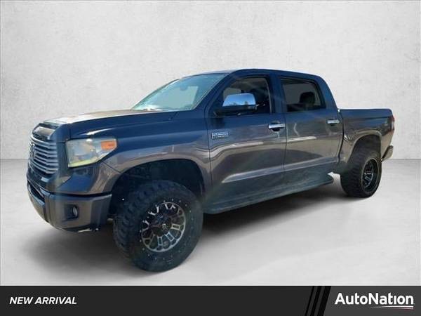 * Sun/Moonroof * Blind Spot Monitor Lane Change Assist * Leather Seats * Navigation System * Bedliner W/Deck Rail System * Running Boards * Cooled Front Seat(S) * 50 State Emissions * Black; Leather Seat Trim * Magnetic Gray MetallicThis vehicle includes a Money-Back Guarantee* and passed our precise inspection process. Best of all the price you see is the price you pay. No haggling. No back and forth. No pressure. And this price is so good it is guaranteed. *Money-Back Guarantee is valid for 5 days or 250 miles, whichever comes first. Subject to certain terms and conditions. See store for details. Some restrictions apply.AutoNation Toyota South Austin is honored to present a wonderful example of pure vehicle design... this 2014 Toyota Tundra 2WD Truck Platinum only has 152,143mi on it and could potentially be the vehicle of your dreams! Quality and prestige abound with this Toyota Tundra 2WD Truck Platinum. This is about the time when you're saying it is too good to be true, and let us be the one's to tell you, it is absolutely true. Beautiful color combination with Magnetic Gray Metallic exterior over Black interior making this the one to own! More information about the 2014 Toyota Tundra 2WD Truck: The 2014 Tundra CrewMax has best-in-class legroom according to Toyota and offers the only reclining and sliding rear seat among pickups. The Tundra also offers one of the best-designed interiors, with plenty of storage space and easy access to the backseat area. The available 5.7L engine makes 381 horsepower and 401 lb-feet of torque, with hauling and towing ability near the top of the segment. Interesting features of this model are Safety features, thoughtful interior design, towing and hauling ability, and pair of V8 engine options
