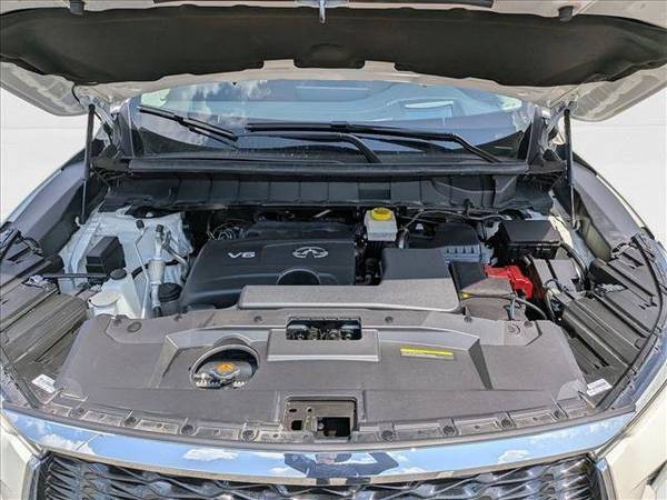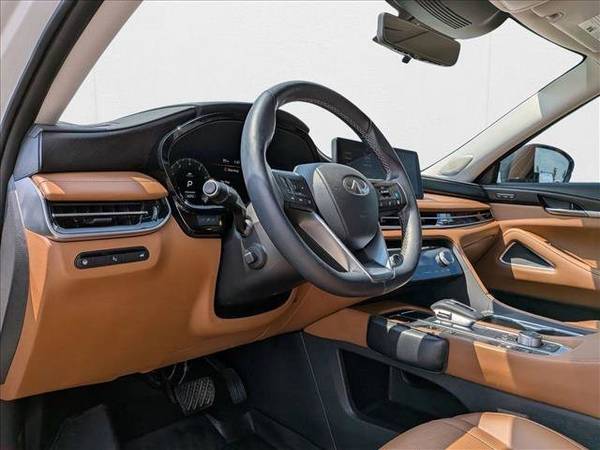 * [V01] Vision Package * [T01] Tow Package * Panoramic Roof * [M92] Cargo Package * [B93] Silver Cross Bar * Leather Seats * Navigation System * 3rd Row Seat * [B92] Splash Guards * Lane Keeping Assist * Keyless Start * Rear Spoiler * Heads-Up Display * Cooled Front Seat(S) * [C03] 50 State Emissions * Majestic White * Saddle Brown; Leather-Appointed Seating SurfacesAutoNation Chrysler Dodge Jeep Ram Spring is honored to present a wonderful example of pure vehicle design... this 2023 INFINITI QX60 SENSORY only has 16,030mi on it and could potentially be the vehicle of your dreams! This INFINITI QX60 SENSORY has a tough exterior complemented by a well-designed interior that offers all the comforts you crave. Put performance, safety, beauty, sophistication and all the right amenities into a car, and here it is! Now you can own luxury without the luxury price tag! Navigate through all the icky weather with ease in this AWD-equipped INFINITI QX60, and even get non-stop traction for your non-stop lifestyle! In addition to the amazing traction control, you may even qualify for an insurance reduction with this AWD vehicle. One of the best things about this INFINITI QX60 is that it has low, low mileage. It's ready for you to truly break it in. Over 43 Million Happy Customers have trusted us when buying or servicing their cars and trucks. That''s more than any other automotive retailer. Since AutoNation is America''s Largest Automotive Retailer, we hold ourselves to higher standards. That''s why we offer processes and guarantees you won''t find anywhere else.