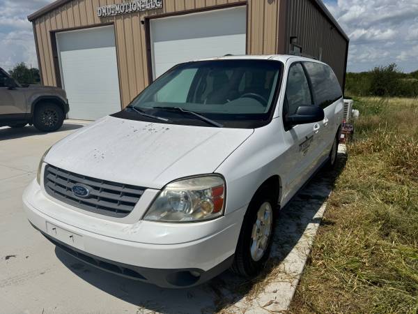 2009 Ford Freestar mini van. 3.9 v6. Three rows of seats. The interior is in good condition. The exterior has peeling paint on the roof and hood. The van will start and run with a jump, but will not move due to a broken output shaft on the torque converter. It must be towed. Priced for quick sale, as I do not work on vehicles. Clear Texas title. One owner. Sold by DMD Motion in Bertram, TX. Price plus Tax and Title.