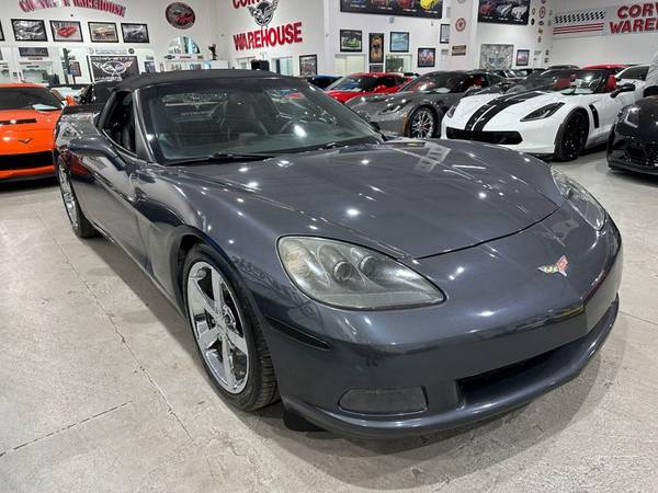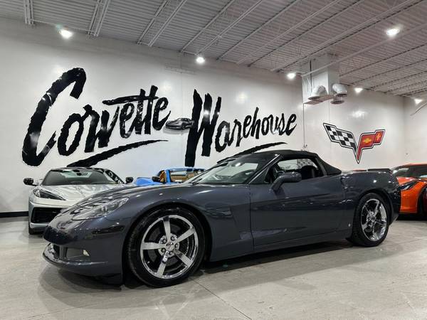 2009 Cyber Gray / Black Leather Chevrolet Corvette Convertible loaded to the brim with the 3LT Preferred Equipment Group ($6,550 Option), MX0 6-Speed Paddle Shift Automatic Transmission ($1,250 Option), Navigation Audio System ($1,750 Option), F55 Magnetic Selective Ride Control Suspension ($1,995 Option), Lloyd's Floor Matts, Black Convertible Soft Top, Carbon Fiber Full Body Length Rear Spoiler, and the Q9V Forged Chrome Aluminum Wheels ($1,850 Option) with only 62k Miles!