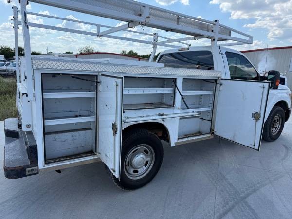 2016 Ford F-350 XL Regular Cab Utility/Service Truck with 186,004 miles. 6.2L V8 Gas engine with a 6-speed automatic transmission. 2WD, Single rear wheel, 10,000 GVW. Royal Service/Utility body with...