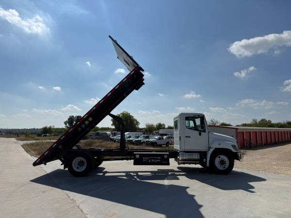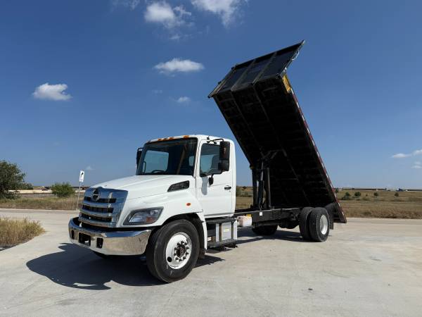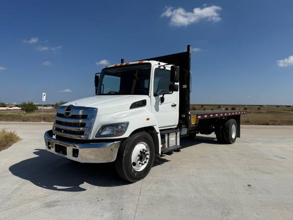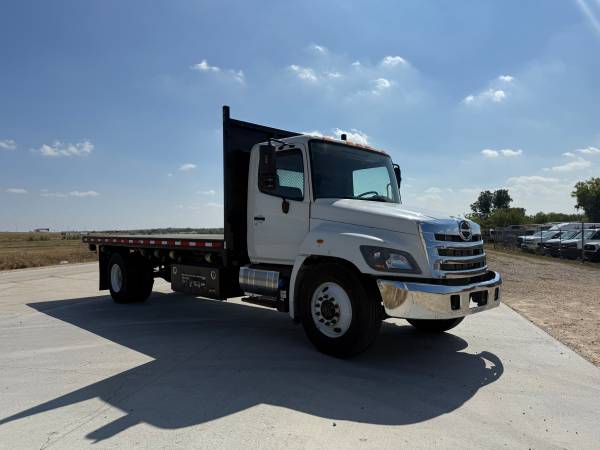 2018 Hino 268 20ft Flatbed Dump Truck with 226,450 miles. 7.6L Hino J08E Diesel engine with an Allison automatic transmission. Hydraulic Brakes. 25,950 GVW. ***No CDL required*** Ledwell electric...
