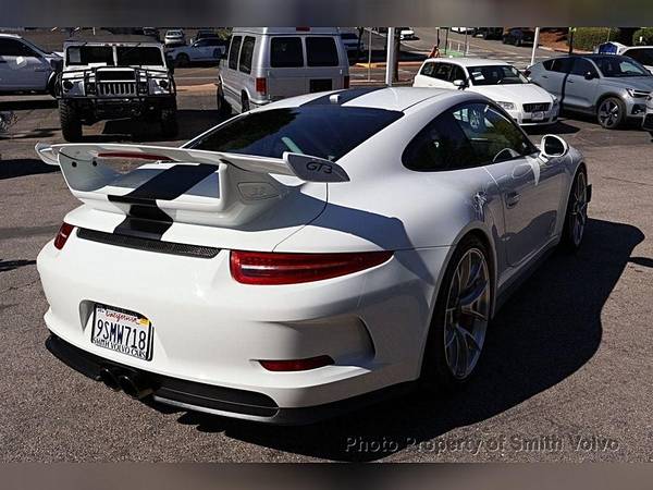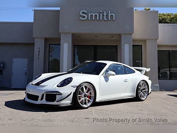 HURRY DOWN TO SMITH VOLVO FOR THIS 2014 PORSCHE 911 GT3! WITH THE FACTORY WARRANTY G6 REPLACEMENT MOTOR THIS GT3 IS WHITE OVER BLACK/ALCANTRA WITH STITCHING IN GUARDS RED. OPTIONS INCLUDE 18 WAY ADAPTIVE SPORT SEATS PLUS, PAINTED INTERIOR PACKAGE, SPORT CHRONO PACKAGE PLUS, BLACK BI-XENON HEADLIGHTS, FRONT AXLE LIFTING SYSTEM, SOUND PACKAGE PLUS, LIGHT DESIGN PACKAGE, HEATED SEATS, AND MUCH MORE! GMG ROLLBAR, ABOUT 6000 MILES ON NEW MOTOR. FULL FRONTAL PPF. APEX WHEELS FOR MORE INFORMATION PLEASE CALL 805-543-0832 OR TEXT 877 -