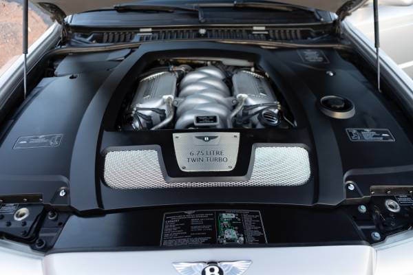 This 2005 Bentley Arnage is finished in Silver over Black interior. Power is provided by a 6.75 liter engine driving the rear wheels through an 4-Speed transmission.