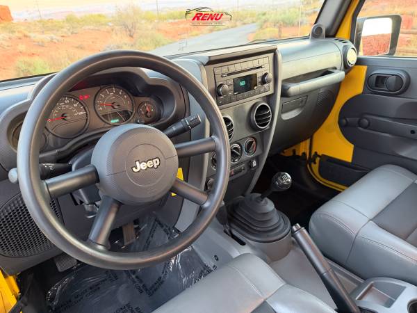 This 1-Owner 2008 Jeep Wrangler X is finished in Detonator Yellow over Dark/Medium Slate Gray interior. Power is provided by a V6 engine driving all wheels through a 6-Speed manual transmission.