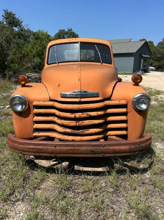 The image shows a 1953 Chevrolet Loadmaster truck with a flatbed.