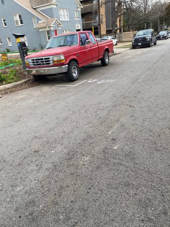 Selling my 1992 Ford F-150. Crew cab, straight-6 engine, 5-speed manual transmission. Odometer shows around 200k miles.