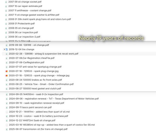- Records: I have nearly 19 years of service history records scanned. Like other long-term owners, some of the typical maintenance work I did myself but have that documented too.