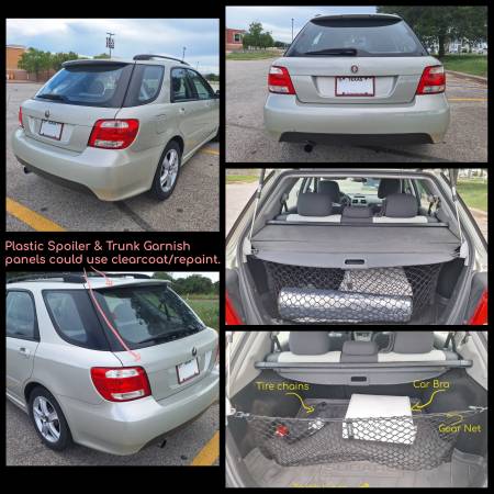 The TL;DR: Saab 9-2x Linear 5MT in Desert Silver Metallic with about 145,600 miles - transmission & a/c need repairs. 2nd owner for 19 years. Lots of older Subaru upkeep maintenance done over the past 16k miles (Engine head gasket repair, Spark plugs/lines, Timing belt, Front CV joints & axles replaced, brake pads & rotors, some rust prevention painting). Fix the tranny and this'll have a good life for those looking for a winter snow car, or do more GD / GG Impreza mods for a rare wagon setup.