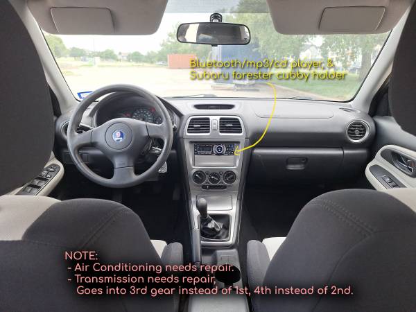 - Transmission: This is a 5-speed MANUAL Transmission. The issue with it is 95% of the time it's getting into 3rd gear instead of 1st so you need to carefully rev up and slowly clutch in. My guess is the 1st and 2nd gear syncros need to be replaced. You can technically still drive it slowly on level surfaces. Transmission gear oil was recently changed with Subaru High Perf gear oil.