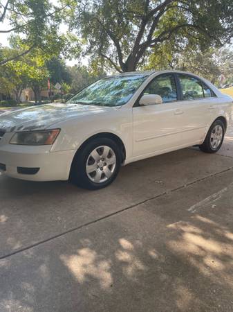 2008 HYUNDAI SONATA V6 DOHC 24V. POWDER WHITE PEARL/LIGHT GRAY CLOTH INTERIOR. ADULT OWNED & DRIVEN BY 2ND. ORIG. OWNER FOR PAST 16 YRS. AT, V6, PWR.MOON ROOF AND COLD AC WITH ALL GLS OPTIONS PKG. 129,881 ORIG. MILES. RECENT TIRES & NEW BATTERY. RUNS EXCELLENT ALWAYS SERVICED. FRONT HOOD & ROOF SHOWING PEELED PAINT DUE TO AGE. ABS LITE SHOWING. INCLUDED WITH SALE ARE 2 SETS OF KEYS AND FOBS, ORIG. FACTORY OWNERS HANDBOOKS AND SPARE TIRE AND JACK TOOLS. HAS CLEAN TX. TITLE AND NO ACCIDENTS. SALE PRICED AT $2995 CASH SALE ONLY. NO SCAMS. OWNER MOVING TO AUSTRALIA REASON FOR SALE. (SELLER ALSO IS SELLING A 2023 HYUNDAI SONATA HYBRID SEL 15K. ORIG. MILES PURCHASED NEW). CONTACT: show contact info